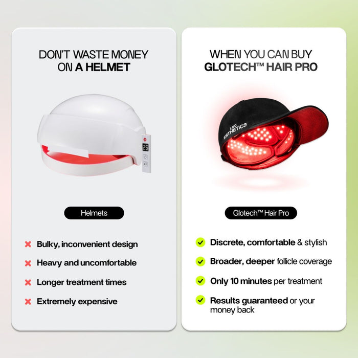 This foldable panel fits discretely into your favorite hat, beanie or space helmet. Treat your hair anytime, anywhere (and look good doing it). +FREE Glotech Cap for the first 1,000 orders!