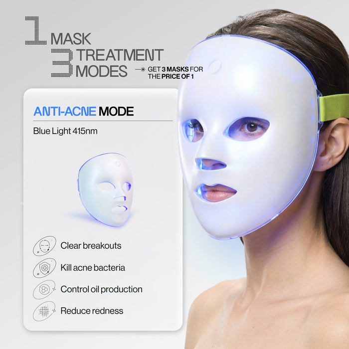 Transform your skin at home with our FDA-cleared LED mask. Red and Blue light target aging and acne in one device. Now upgraded with more LEDs, Dual Action mode, and a fully wireless design.