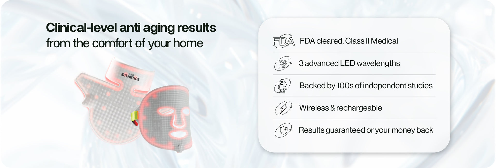 This best-selling bundle includes the Glotech Mask Pro and Glotech Collar for total skin renewal, at the cellular level.