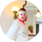 Includes a custom mask that can be plugged in directly to a wall outlet allowing the mask to remain continually illuminated.