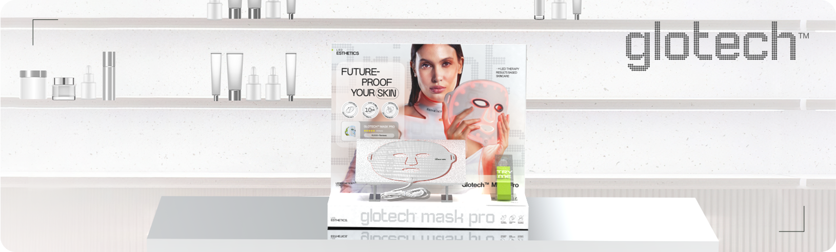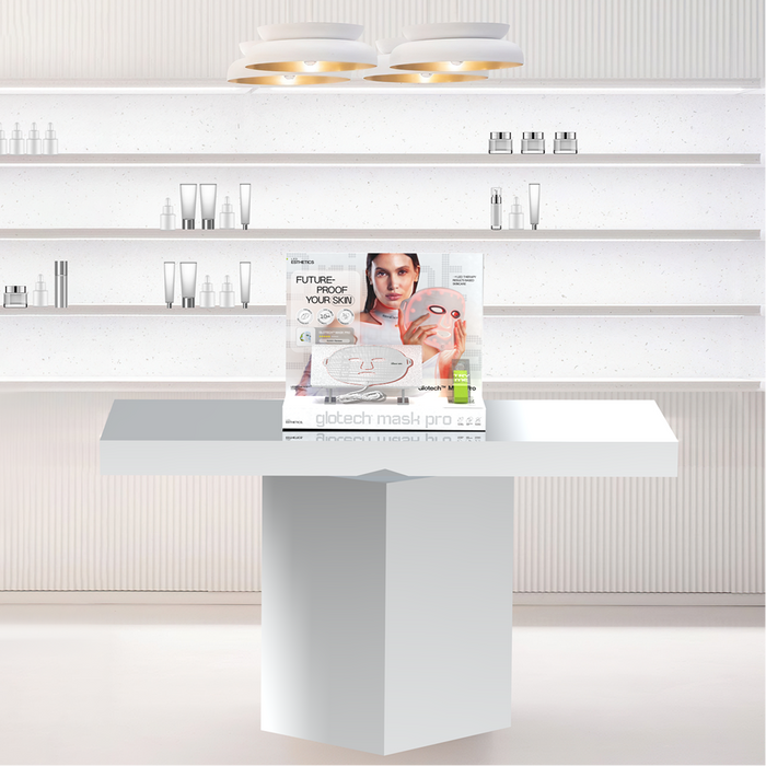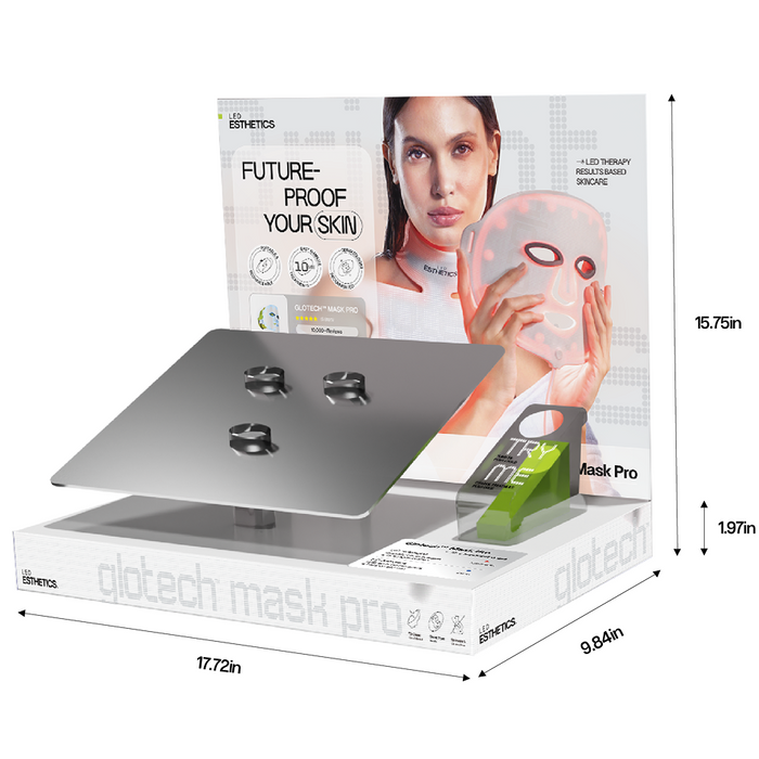 Showcase your LED mask pro with elegance and functionality using the Mask Pro Display. Designed to captivate attention, this sleek and modern display unit highlights the innovation and premium quality of the Glotech™ Mask Pro.